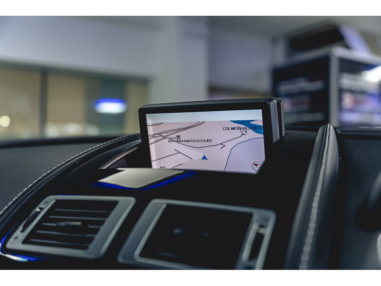 The interior of the car has the Sat Nav, bluetooth telephone preparation, Black Leather.