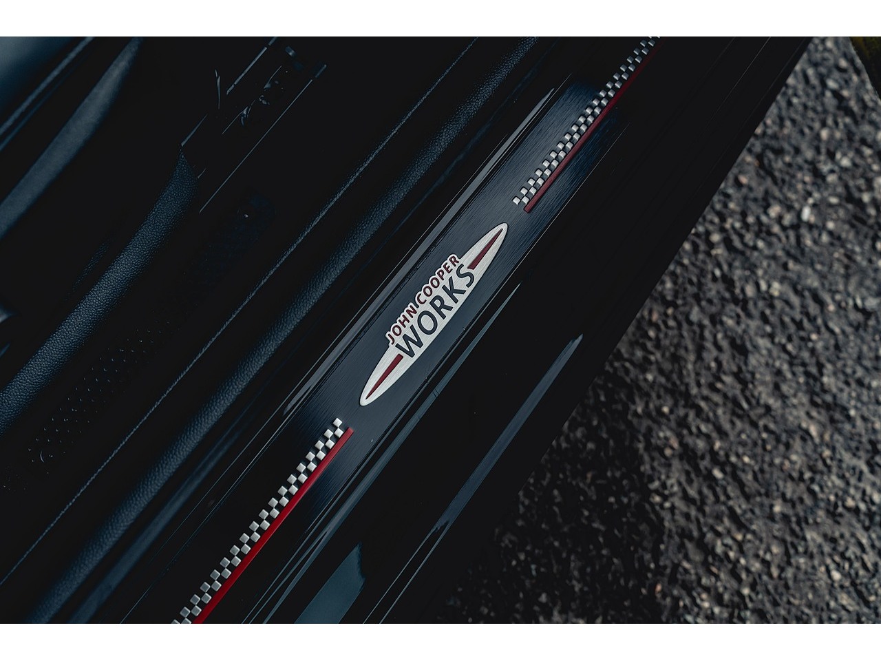 • Side Scuttle with MINI John Cooper Works Logo in Black High-Gloss with Red Border