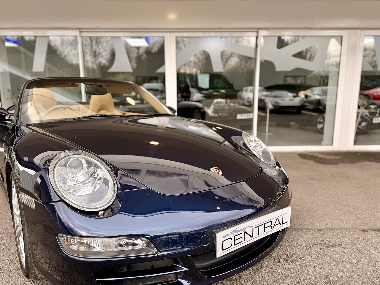 Here we have our Porsche 911 997 Carrera S cabriolet finished in midnight blue metallic with a metropole blue roof and sand beige full leather interior.